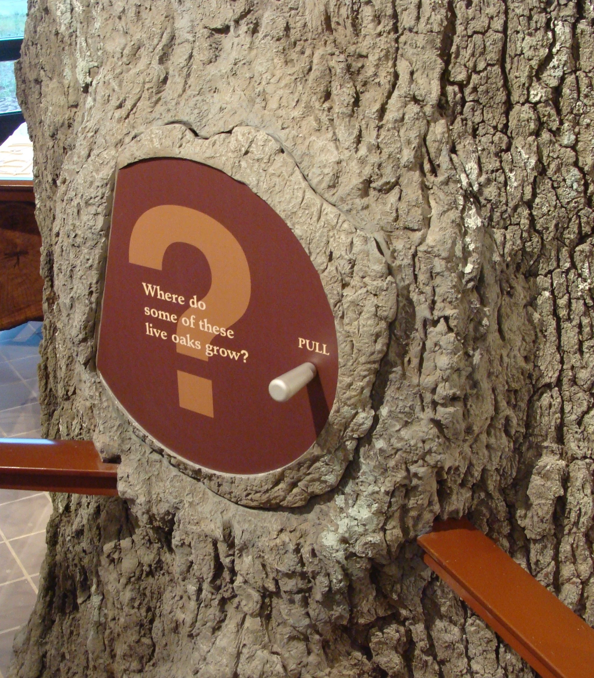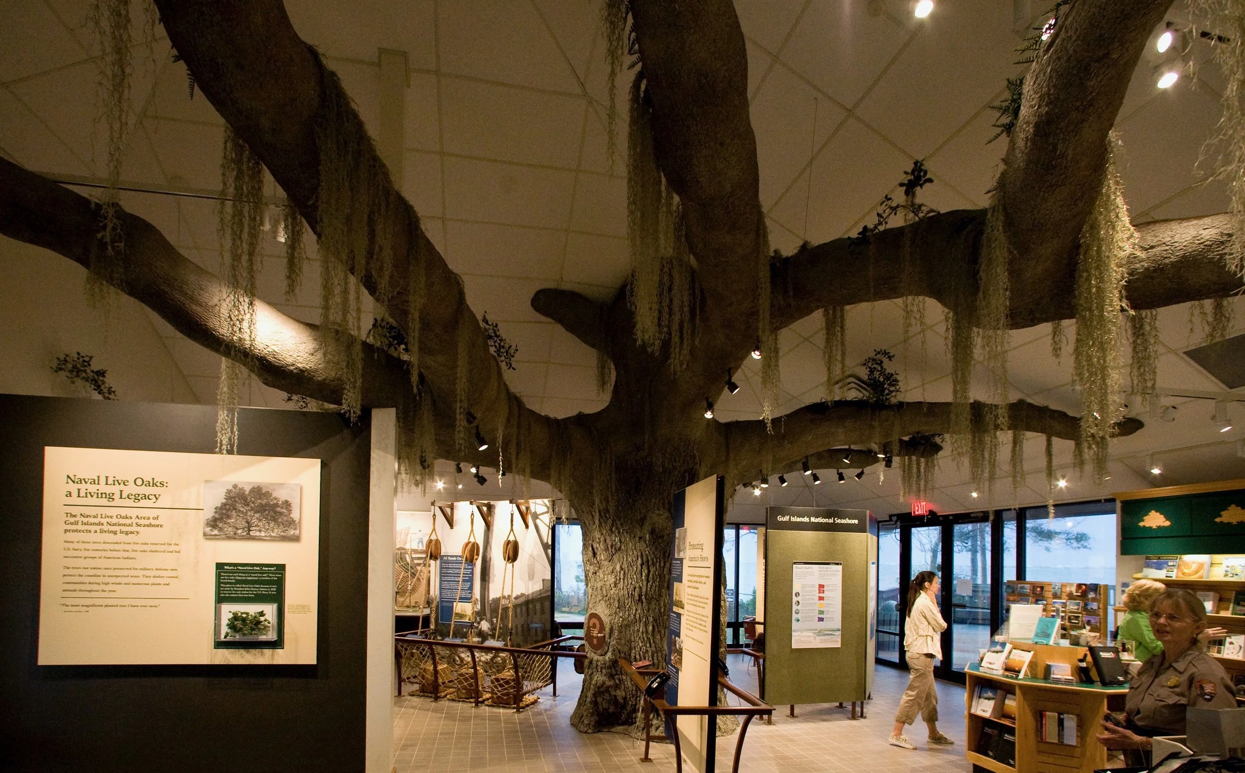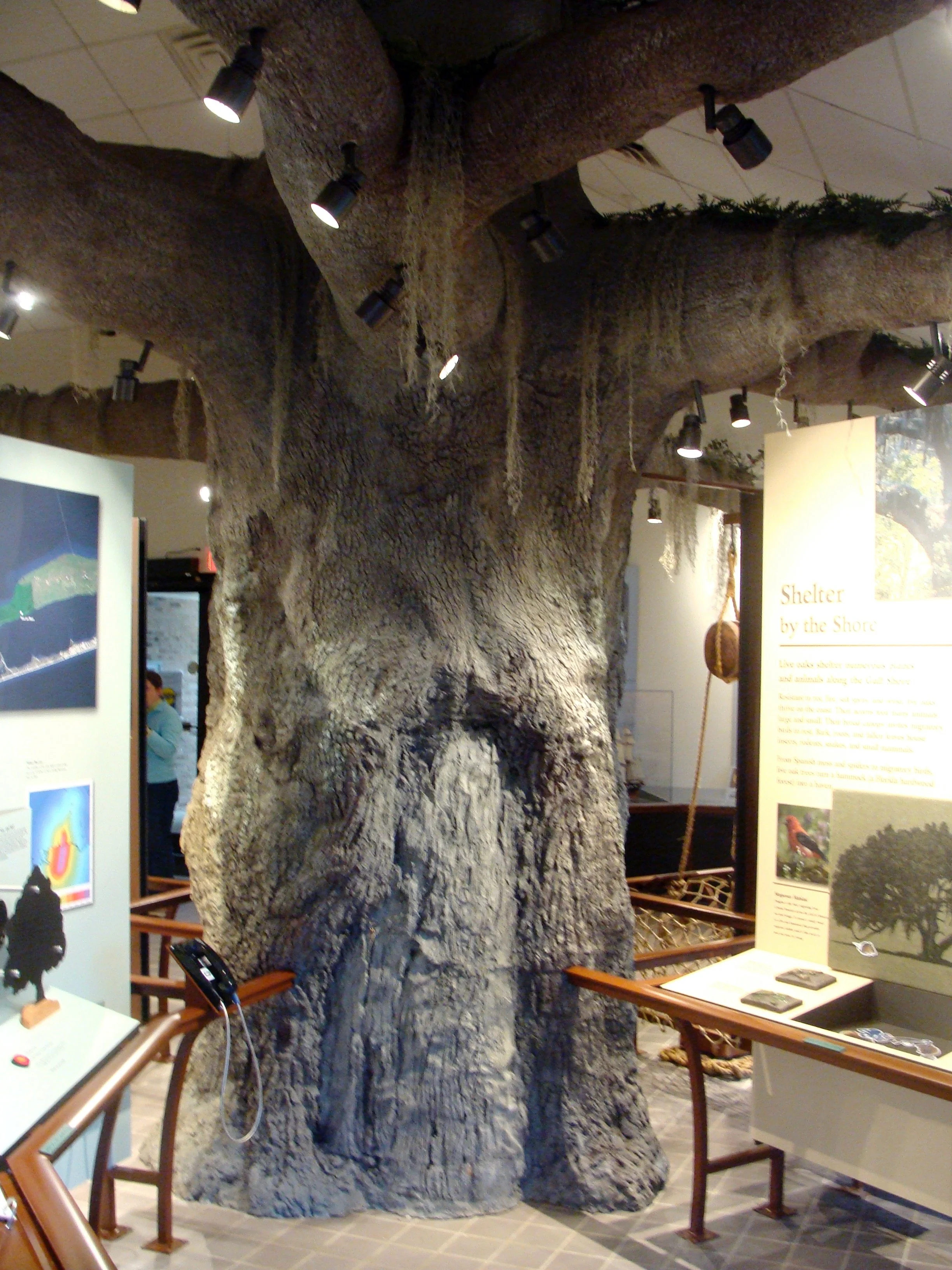 Life-size model of a Live Oak Tree for the integration of interpretive exhibits at the Gulf Islands National Seashore Visitor Center, Gulf Breeze, FL, 2009, in collaboration with Southern Custom Exhibits.